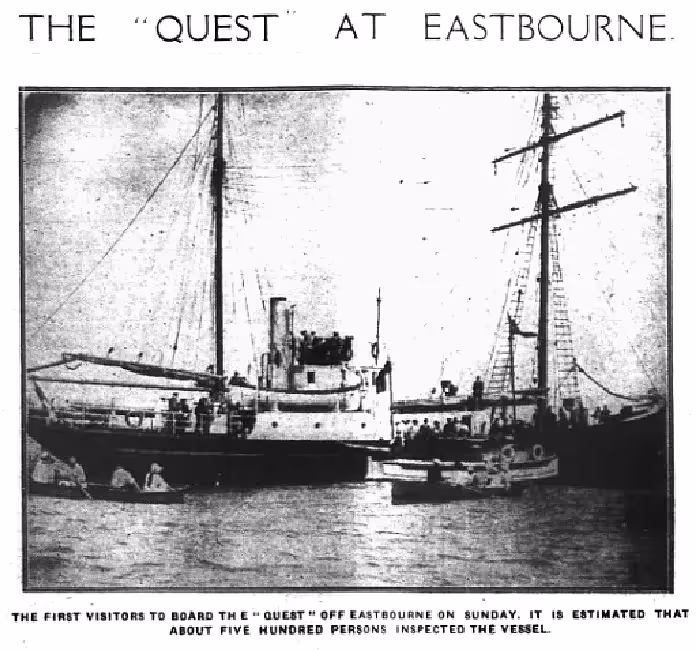 ‘The Nimrod at Eastbourne’ – Eastbourne Chronicle, 3 August 1907. Shackleton aboard the Endeavour – Eastbourne Gazette, 5 August 1914.