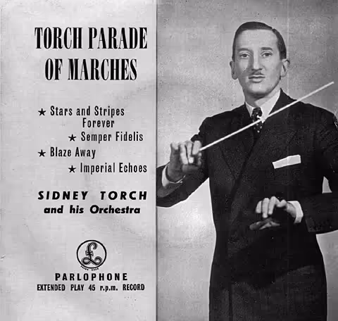 But it was as a cinema organist that he became well known. When a Christie organ, the largest at the time outside the United States, was installed at the Regal, Marble Arch, he moved on to that, and his panache and brilliance brought him rapid success, both there and later at the Regal, Edmonton. He joined Union Cinemas in 1936, and opened new organs, including the mighty Wurlitzer organ at the Gaumont State Cinema, Kilburn, now the biggest in England, which he played from 1937 until 1940. He recorded in those cinemas, and broadcast regularly twice a week for several years during the 1930s on the BBC Wurlitzer organ for the World Service, often in the early hours because everything was broadcast live and at the time required in other countries. Sidney Torch had tremendous flair as a musician and as a showman, in his natty suits and with his signature tune (taken from a popular cartoon) ‘I’ve got to sing a torch song’, to which he added his own lyrics making play on his name.